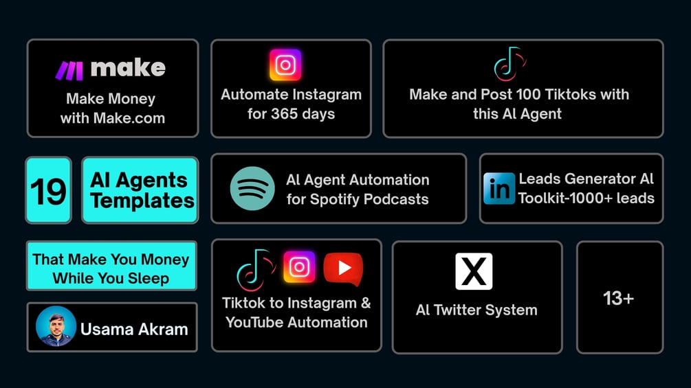 19 AI Agents Templates that run your social media, create content, find leads, and help you make money - all while you sleep. Just plug them in and let them work.